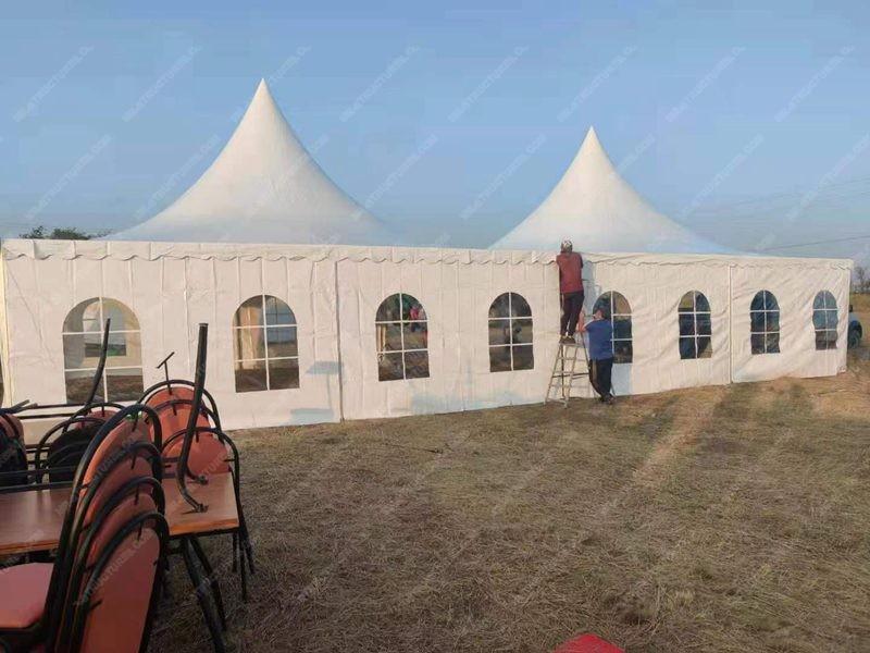 El elegante diseño de pico realza el atractivo estético de la carpa, proporcionando un punto focal llamativo para cualquier evento.