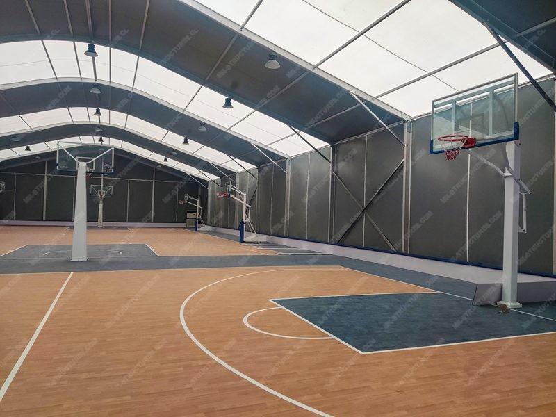 Con su amplia luz y estructura sin columnas, la carpa deportiva Arcum es perfecta para albergar partidos de baloncesto, brindando vistas despejadas y un ambiente espacioso.